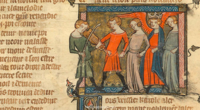 ous vous proposons, aujourd’hui, une nouvelle retouche d’enluminure. L’illustration originale représente la célèbre carole du Roman de la Rose. Elle est tirée d’un manuscrit médiéval daté du XIVe siècle.