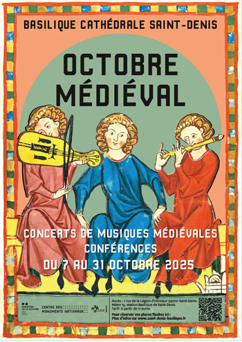 Musiques médiévales et conférences sur le Moyen Âge à la Basilique Cathédrale Saint Denis - Affiche 2025 de l'événement "Octobre Médiéval"