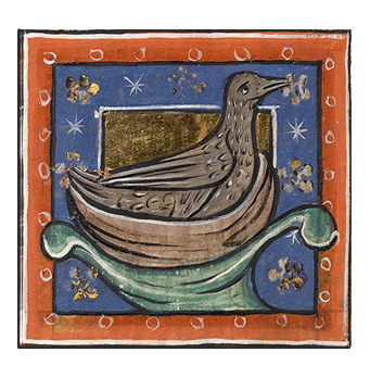 Enluminure d'un Rossignol  dans le Bodley Bestiary, manuscrit MS Bodley 764