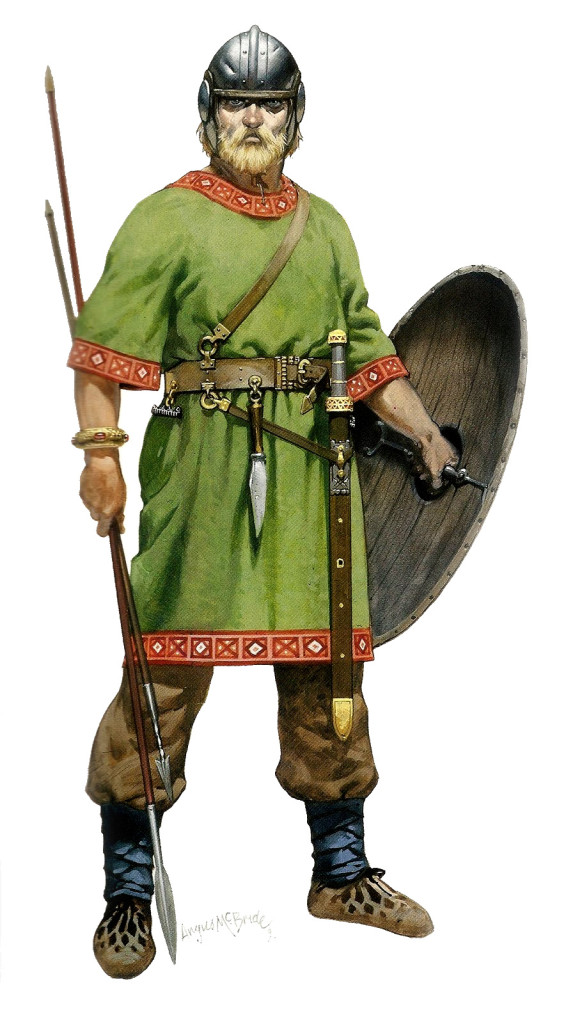ujourd’hui, nous sortons un peu de l’ornière pour faire tribut à Angus McBride, un peintre britannique contemporain de talent, décédé, hélas, il y a quelques années et qui a dédié la plus grande partie de sa carrière à se spécialiser dans les illustrations historiques et d’époque. Bien sûr, tout cela nous ramène, comme on s’en doute, au monde médiéval et au moyen-âge qu’il a aussi contribué largement à illustrer.
